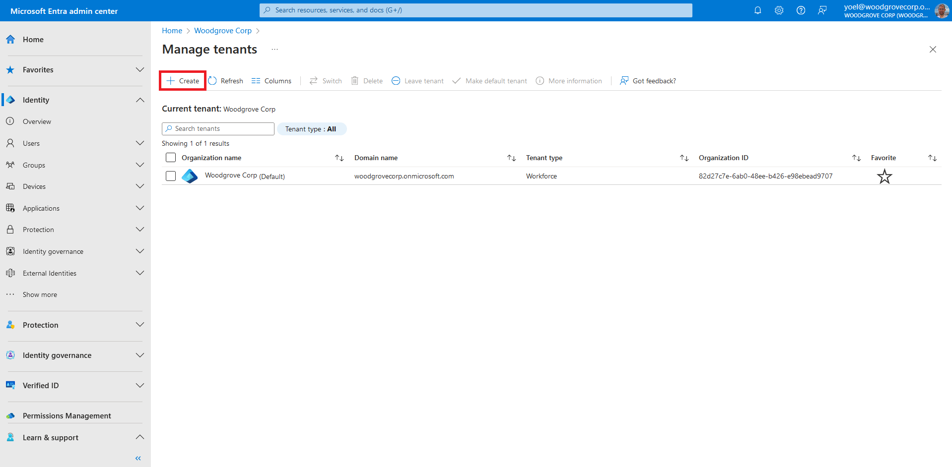 On the Manage tenants, select Create.