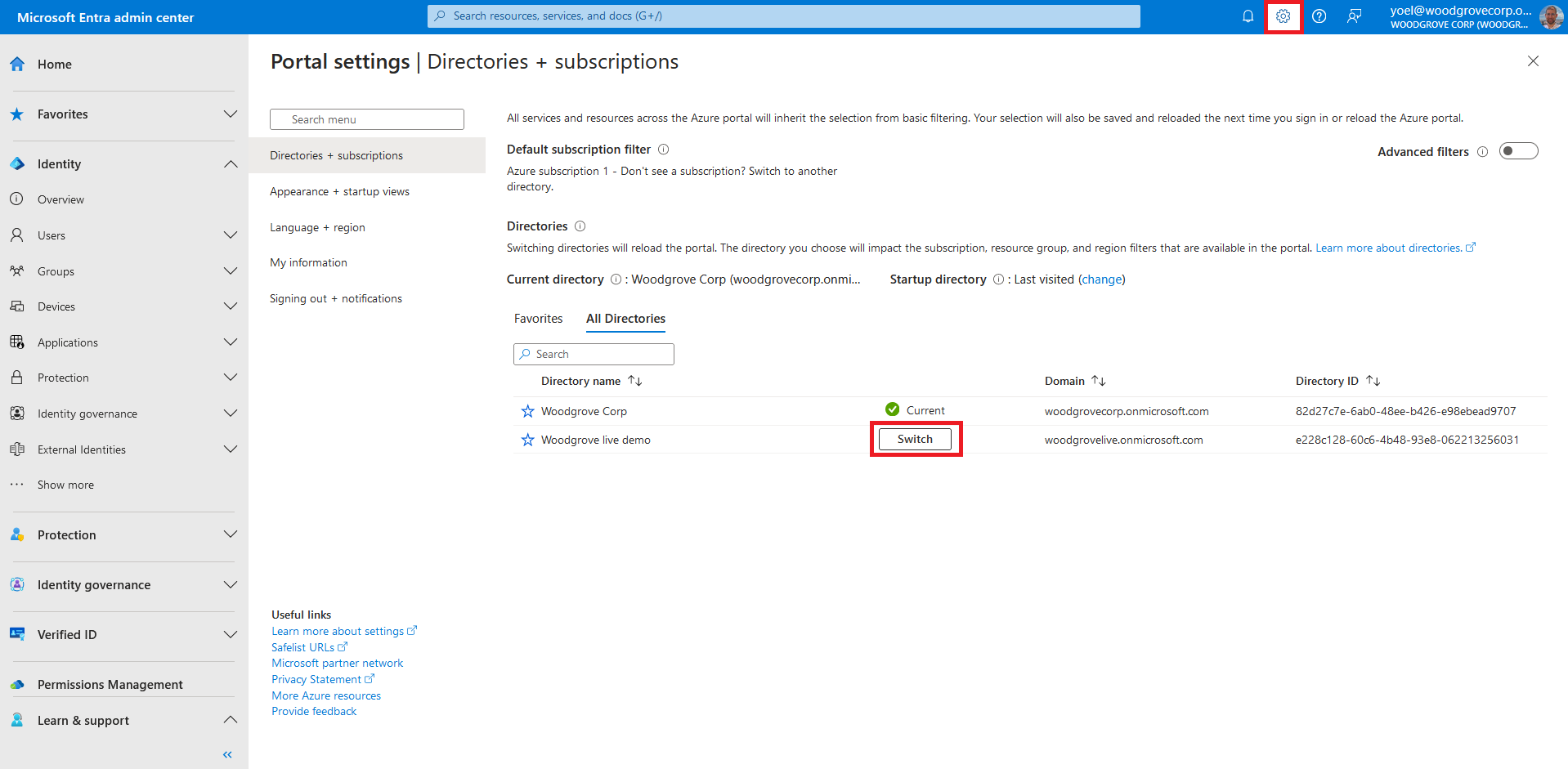 Use the Settings icon in the top menu to Switch to your customer tenant you