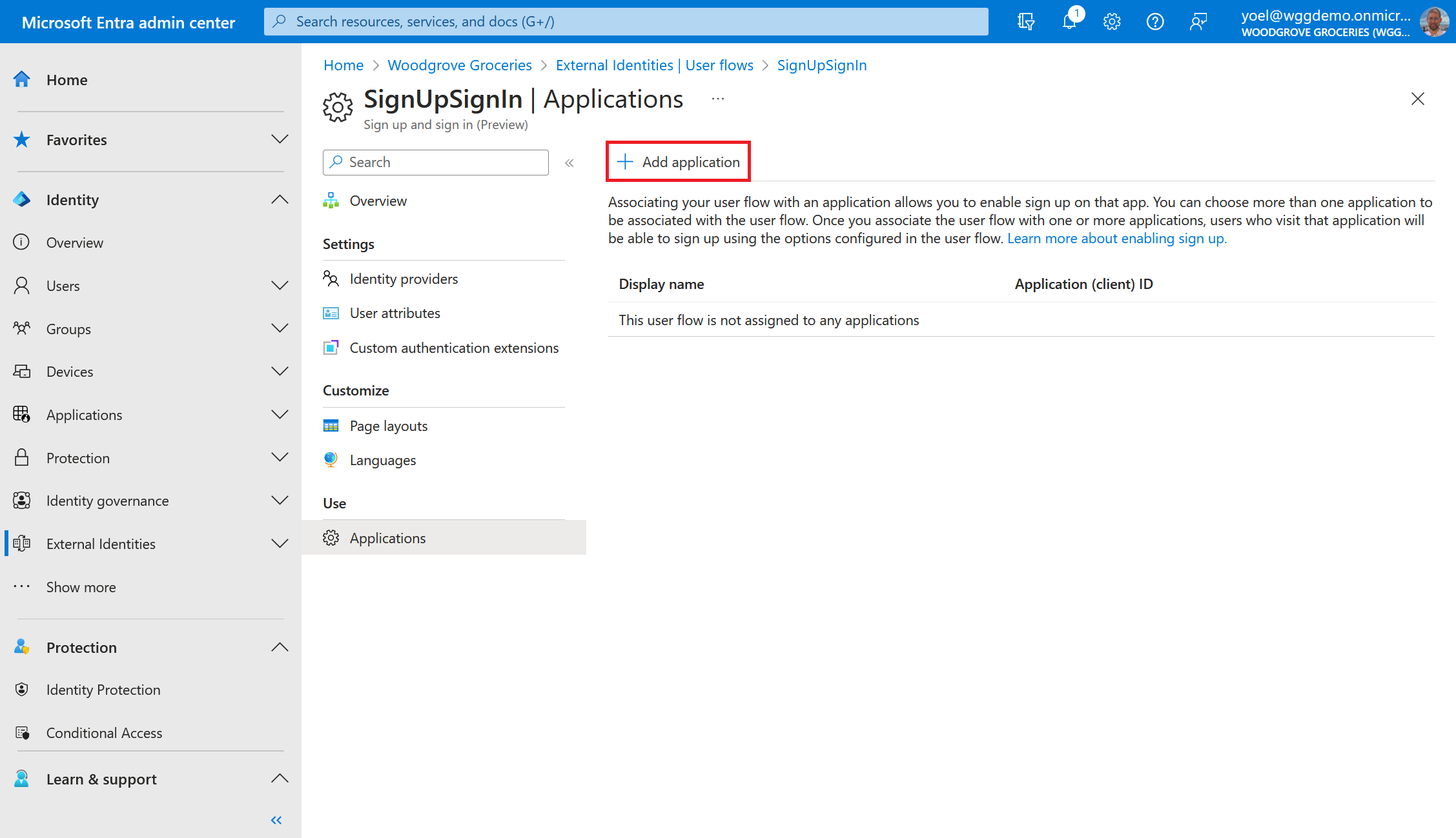 application is linked to the user flow. When users sign-in to the Woodgrove