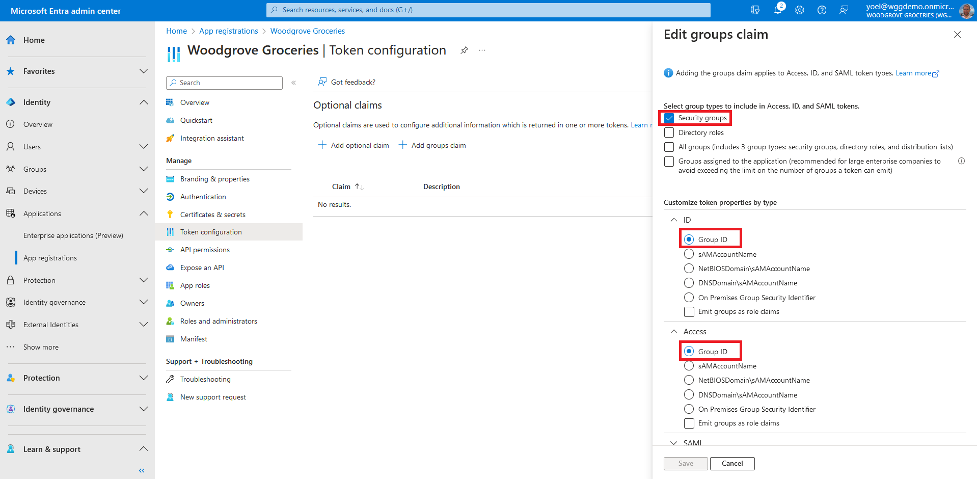 select Group ID for all of the tokens ID, Access and SAML (for SAML
