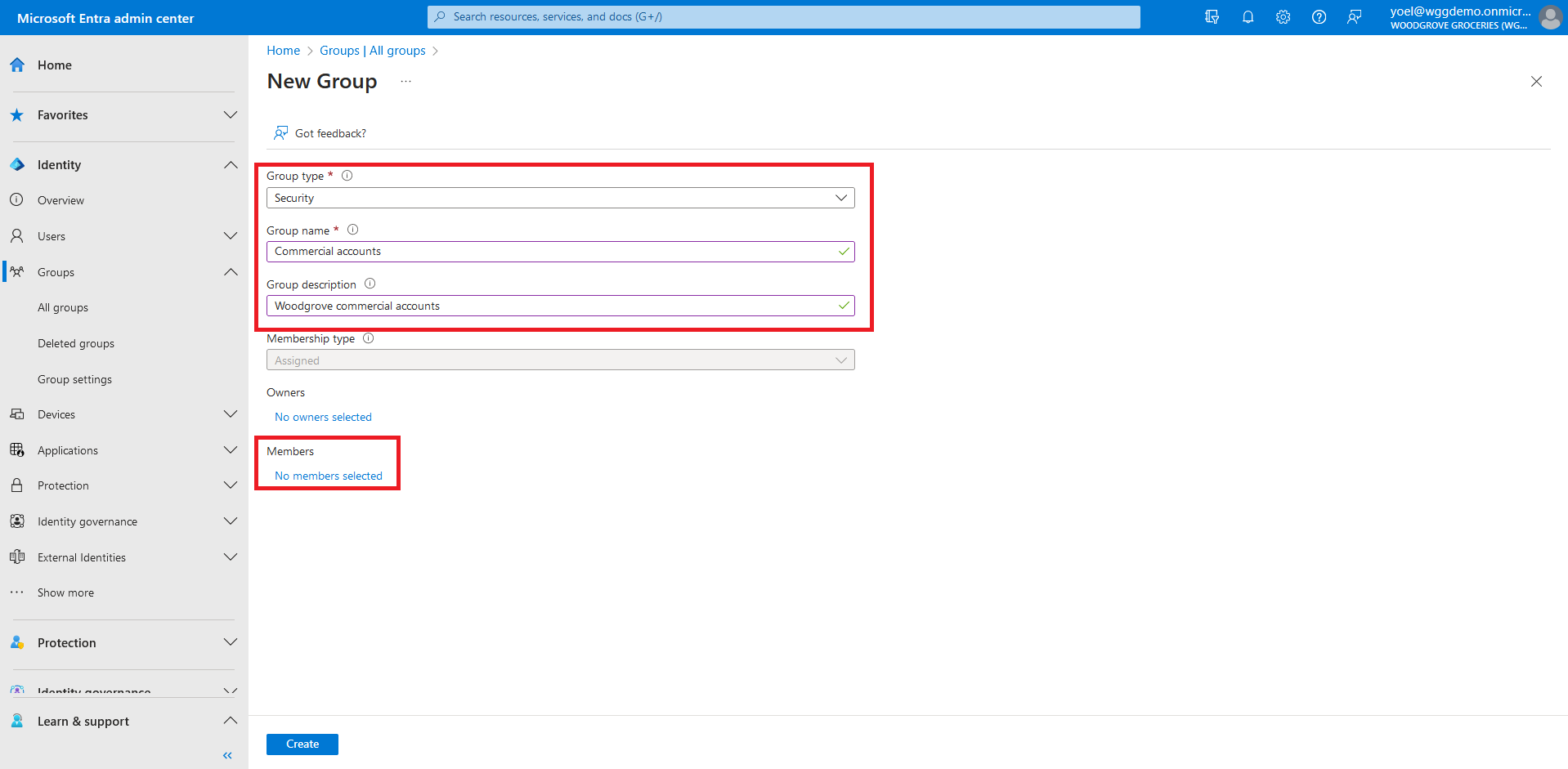 Enter Group description, such as Woodgrove commercial accounts. You can also add