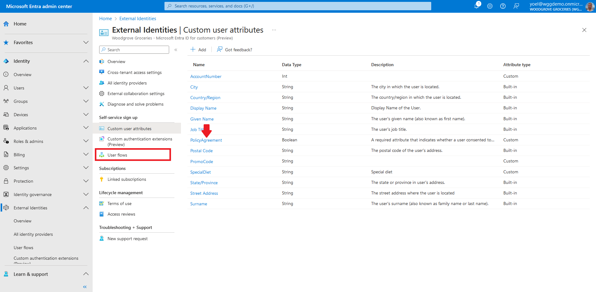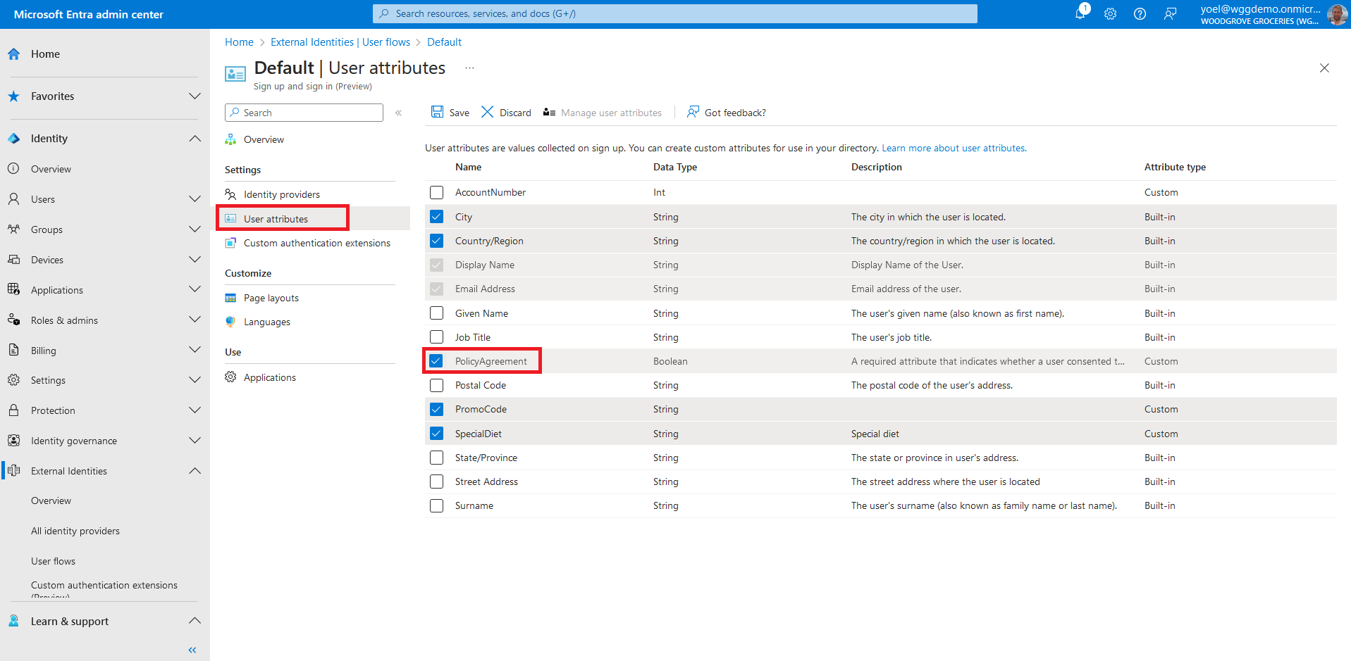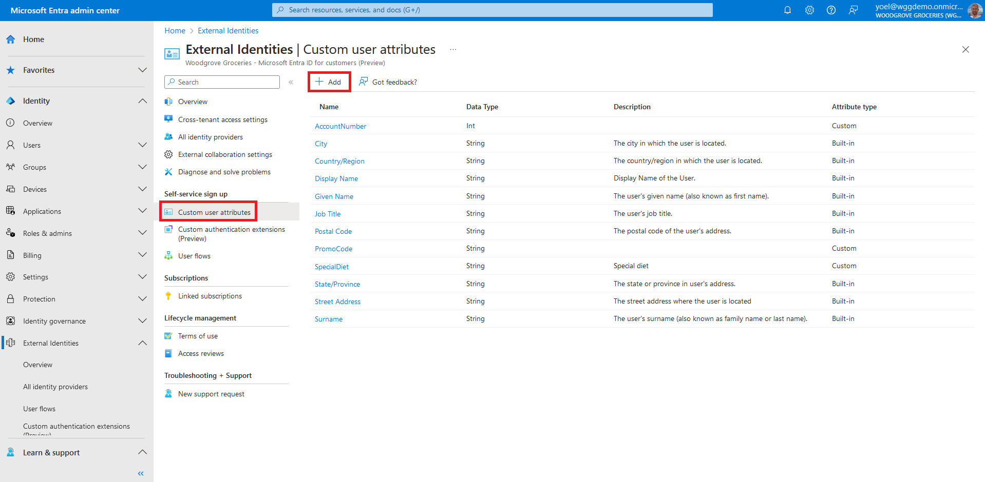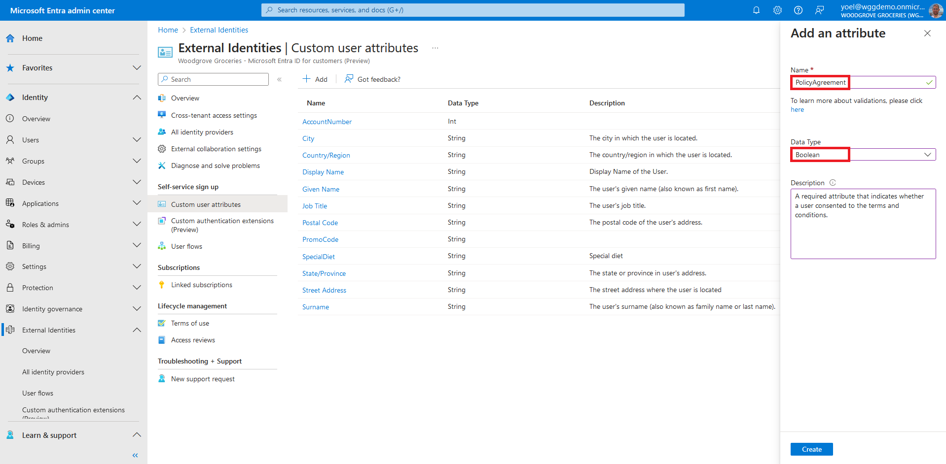 requirements for the use of your app. Microsoft Entra external ID allows you to add a custom user attribute (type of
