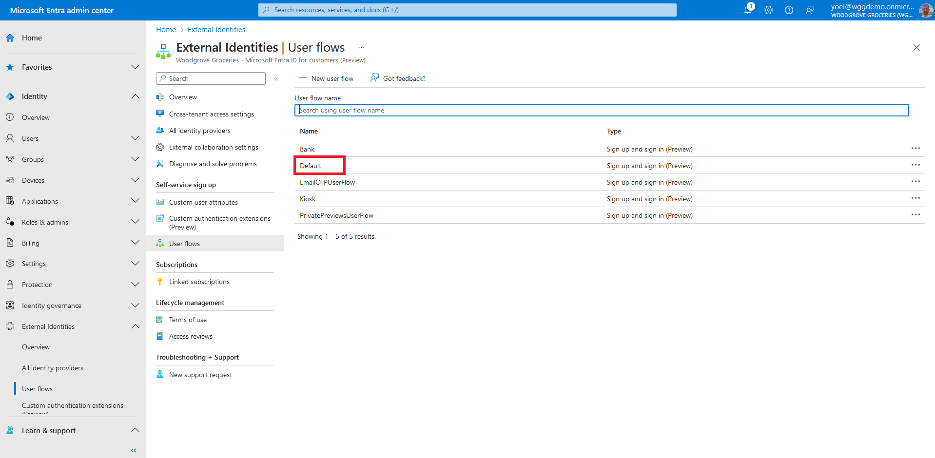 From the list of User flows, select a user flow. In this example, we select the user flow