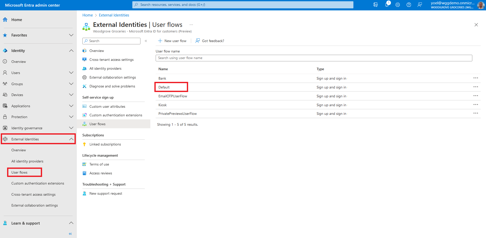 To do so, browse to Identity > External Identities > User flows.