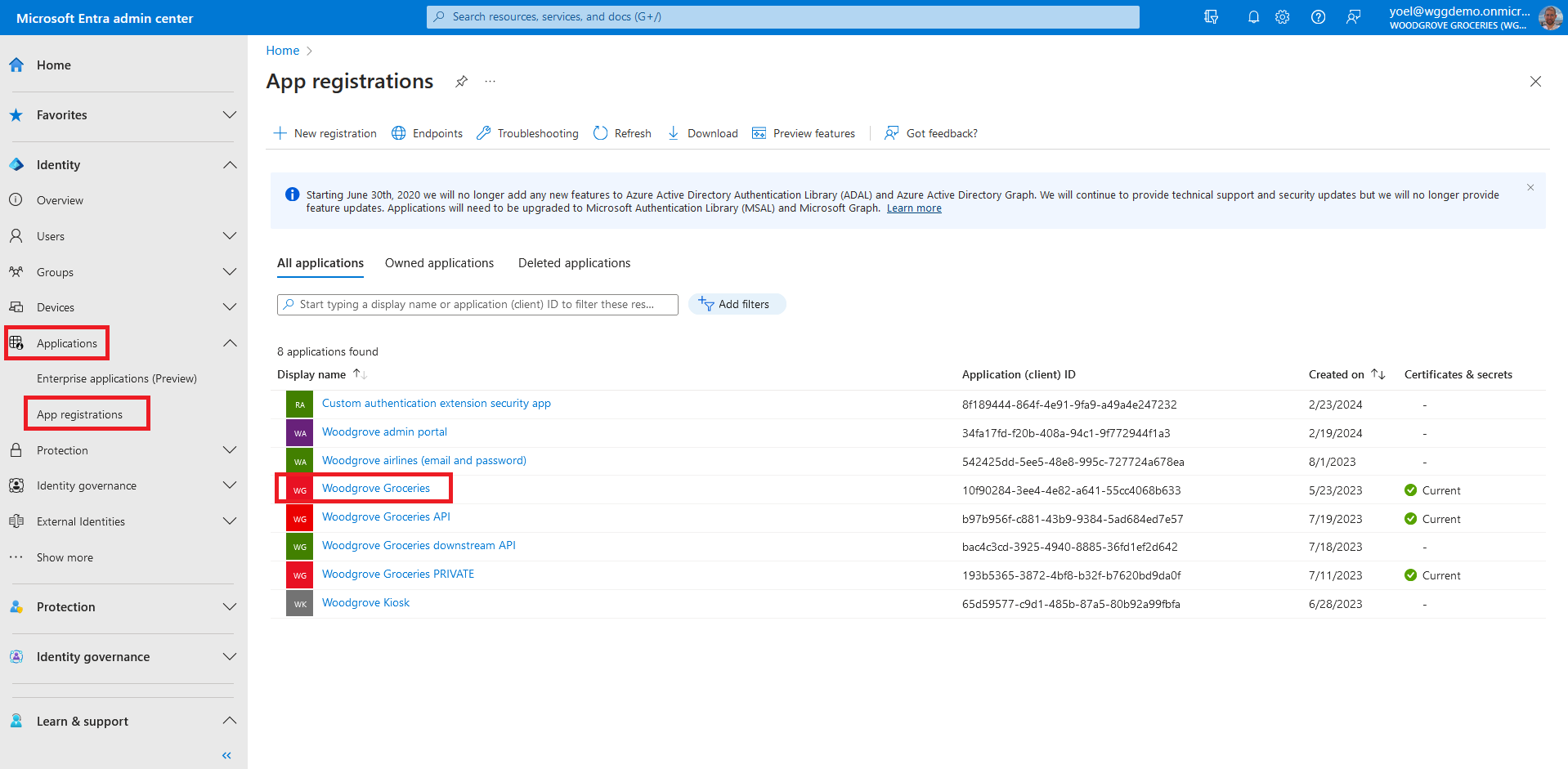 {service-principal-id} with the service-principal ID of your web or mobile application.