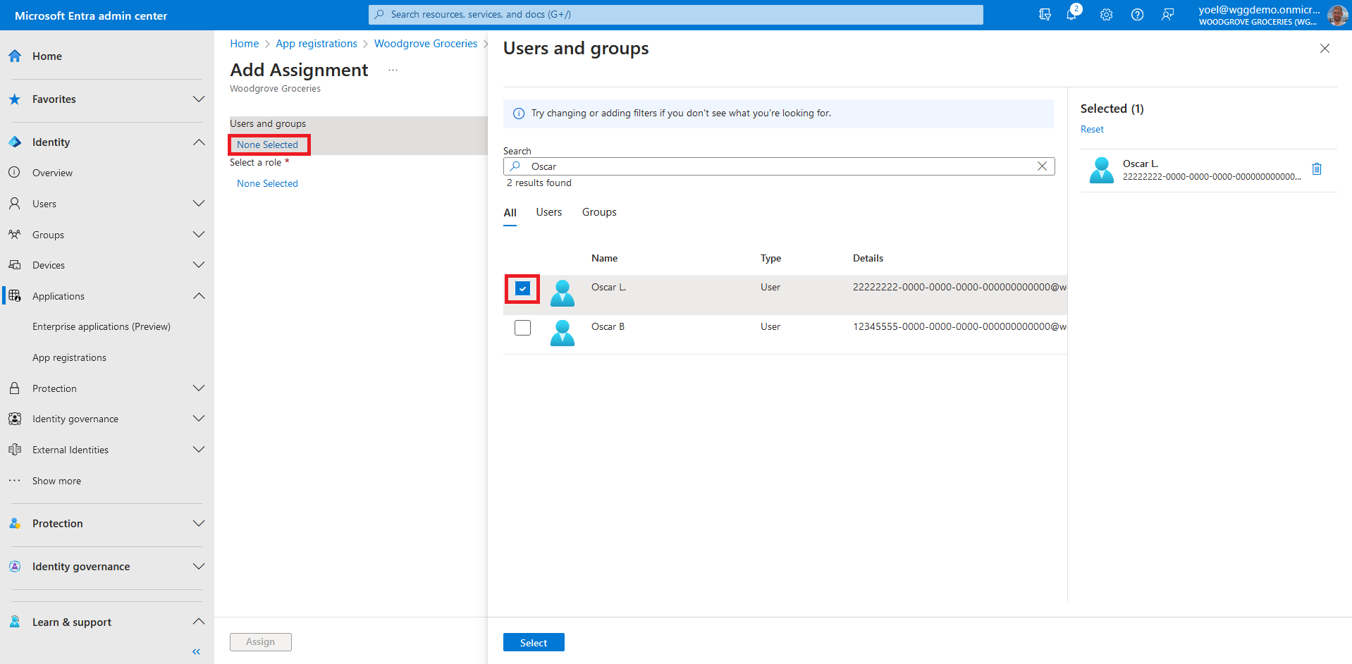 In the Add Assignment pane, select Users and groups. A list of users and security